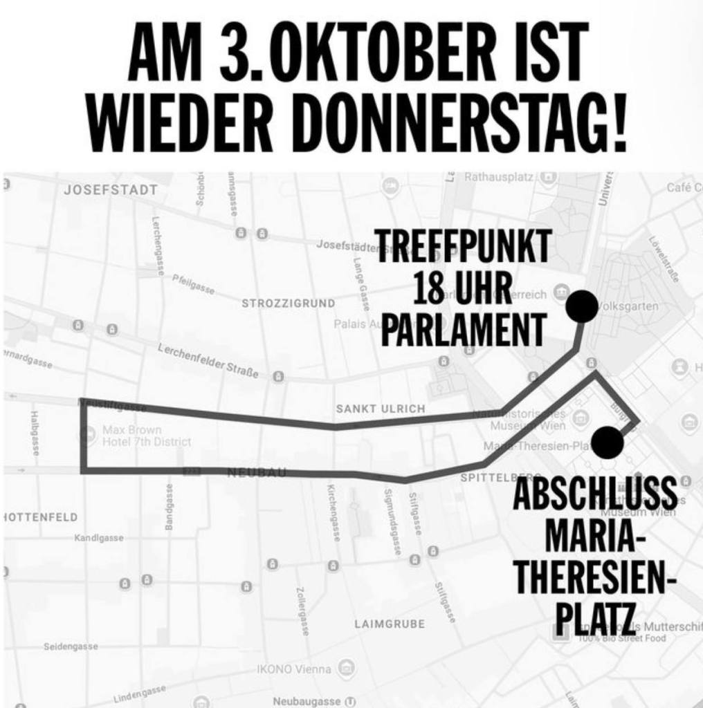 Eine Gelegenheit zur demokratischen Meinungsäußerung gibt es am Donnerstag 3.10. um 18 Uhr vor dem Parlament. Kommt mit!