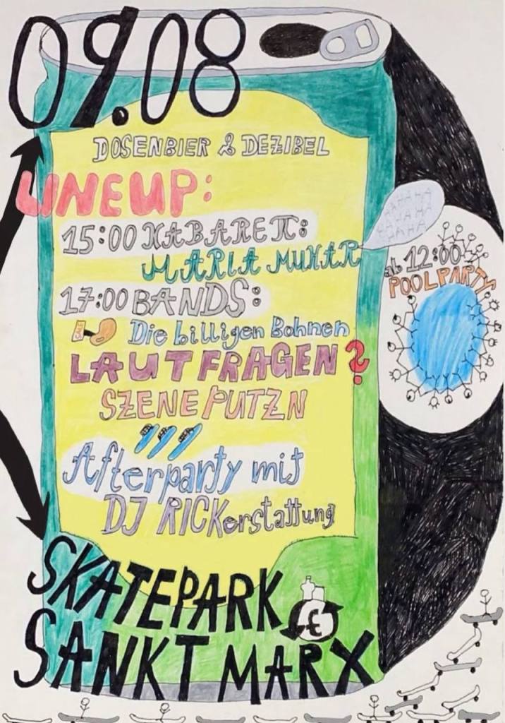 - 09.08. Summer party at St. Marx skatepark: FLINTA-organized TT session plus super low-key cypher